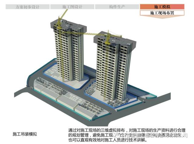 BIM信息化技术的深入应用,需要设计、生产、施工各部门进行密切交流施工模拟需要施工部门根据实际需要进行施工组织预演。