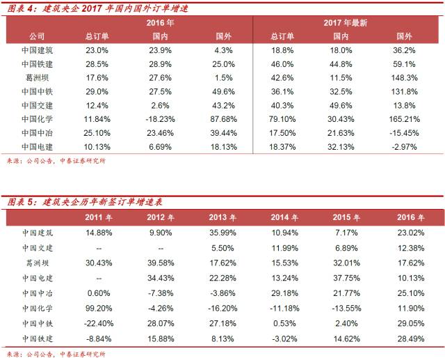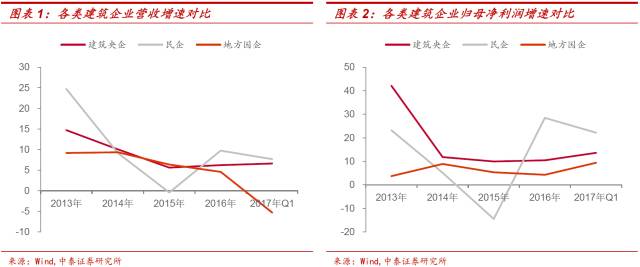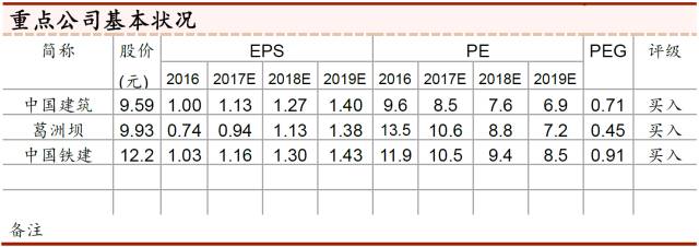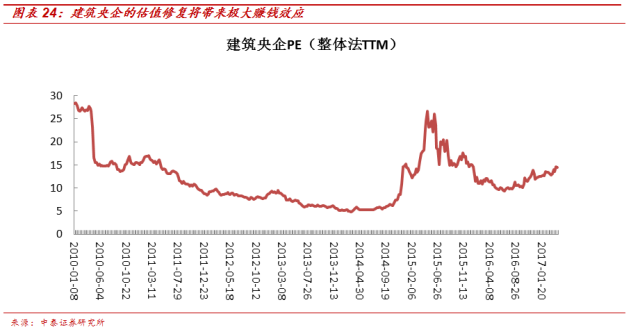 ■ 历史与未来两维度看,建筑央企业绩稳定性高。从2013年至今的数据看,建筑央企的历史业绩稳定性高于民企和地方国企。央企过去三年业绩增速均维持在10%左右,平均ROE达到11.7%,高于民企的9.0%与地方国企的8.7%。展望未来,在国内PPP与海外业务推动下,2016年及今年第一季度八大建筑央企订单平均增速分别为19.7%/37.4%,多个公司增速创近几年新高,在手订单充裕,保障未来业绩持续稳定增长。同时国资委加强考核、股权激励等也划定了建筑央企未来业绩增长底线。 ■ 国内PPP与海外一带一路背景下,建筑央企市占率不断提升。2014-2016年八大上市建筑央企订单总额增速分别为7%/11%/23%,远超行业整体,市占率不断提升。国内基建PPP模式快速推广下,建筑央企凭借融资成本低、项目管理能力强、信誉好、资源组织能力强等诸多优势站在了基建投融资的中心地位,基建订单正快速向央企集中,与地方政府千亿级框架频频出现。八大央企2016年承接PPP订单约1.7万亿,约占落地项目的50%。海外一带一路打开新的广阔空间,建筑央企凭借雄厚的技术实力、良好的海外市场品牌、申请政策性贷款的便利性和强大的抗风险能力走在前列,目前正处于快速扩张期,许多民企出海也需要搭乘央企这艘巨舰。 ■ 央企平台化趋势日益显著,行业优势地位不断强化。在当前行业环境下,建筑央企往往作为项目总包,民企作为分包;许多地方政府项目合作对象仅限央企,典型的情况是,民企因资质、背景原因难以承接项目时,会主动找央企做总包成为中间人,付给央企项目管理费。建筑民企普遍在寻求与央企的合作,业绩亮点严重依赖于与建筑央企的合作。建筑央企平台化趋势日益显著,而这种行业地位和价值并没有在当前建筑央企的估值中得到体现。 ■ 当前市场风格和环境发生深刻变化,建筑央企可能处在估值提升大周期中,我们认为主要原因有四点:第一,建筑央企业绩稳健增长确定性高,受到当前市场青睐;第二,建筑央企行业地位不断提升,特别在近两年PPP与一带一路大力推广的背景下,市场开始逐步认识到这一点;第三,IPO超发,建筑央企在数量上将成为市场稀缺品;第四,建筑央企后续主题催化众多,除一带一路外,在国企改革、PPP、雄安、稳增长等主题上都可能有所表现。 ■ 投资建议:我们认为建筑央企增长确定性高、行业竞争优势显著,估值处于提升大周期中。在当前市场环境下其较低的绝对估值水平使其防御性突显,同时主题催化众多。重点推荐中国建筑(PE8.5倍)、葛洲坝(PE11倍)、中国铁建(PE11倍),此外还推荐中国交建(PE14倍)、中国中铁(PE15倍)、中国中冶(PE16倍)、中国电建(PE16倍)等。 ■ 风险提示:PPP项目落地不达预期风险、海外经营风险、宏观经济波动风险。