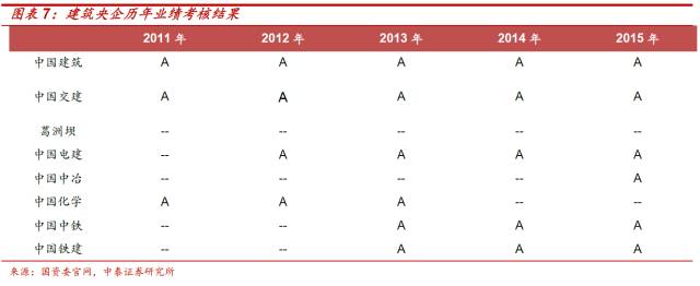 ■ 央企功能分类考核进一步完善,经营业绩考核A级的建筑央企逐年增加,上级考核促使央企对其经营业绩更加重视。国资委分别于2016年8月24日和12月8日印发了《关于完善中央企业功能分类考核的实施方案》和《中央企业负责人经营业绩考核办法》,进一步凸显了中央对各大央企业绩表现的重视。其中,国资委对央企的资本运营效率较为注重,要求央企优化资本布局、规范资本运作、提高资本回报、维护资本安全。同时,也要求各大央企将年度利润总额、经济增加值的增长作为目标,并将利润总额目标值与工资总额预算进行了挂钩,从而激励了管理者对公司业绩的重视,确保了公司未来业绩上的稳定增长。建筑央企作为建筑行业中的龙头企业,其自身对业绩要求也颇高。从历年央企考核结果来看,进入经营业绩考核A级的建筑央企逐年增加。