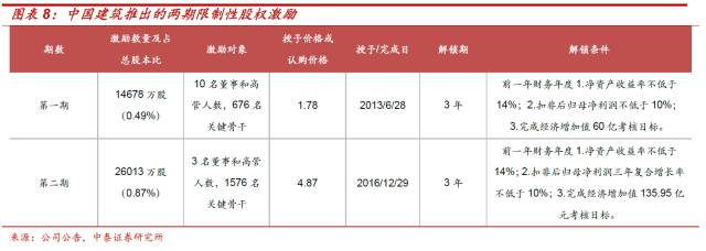 ■ 随着国企改革进程的推进,股权激励出台划定未来增长底线。随着国企改革的深入,建筑央企也纷纷推出股权激励措施。如中国建筑,分别在2013年和2016年推出两起限制性股票激励。股权激励能充分绑定高管、骨干与股东的利益,提升管理效率,激发对业绩及市值诉求,首期与第二期股权激励计划叠加预计将形成4年10%复合增速的考核期(2016-2019年),划定中长期稳健增长目标。后续或有更多央企加入股权激励行列,从而使得未来稳定增长预期更加明确。