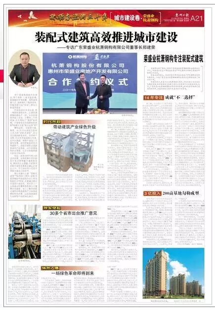 《惠州日报》专版报道 | 荣盛业杭萧钢构专注装配式建筑