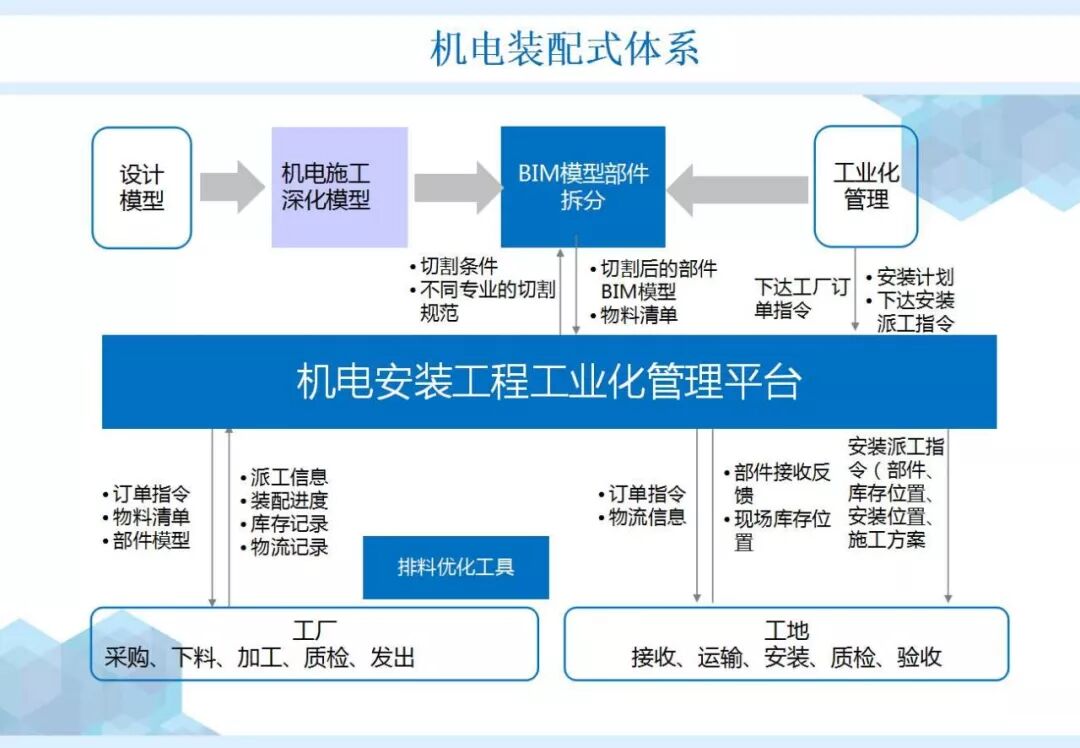紧接着,盛总介绍到装配式机电概念,指出“随着BIM的管线综合;工业化成品支吊架;机电管线及设备工厂化预制;金属风管预制安装施工等新技术的应用。机电专业也从传统的碰撞检查、管线综合向预制加工深入发展,装配式概念不止是存在于钢结构、PC结构,工厂预制现场拼装同样能为机电行业带来效益,是机电精细化管理的最优途径。”介绍了装配式机电的优势:加快工程进度、保证工程质量、保障安全生产、节约材料、降低损耗、便于运维管理。