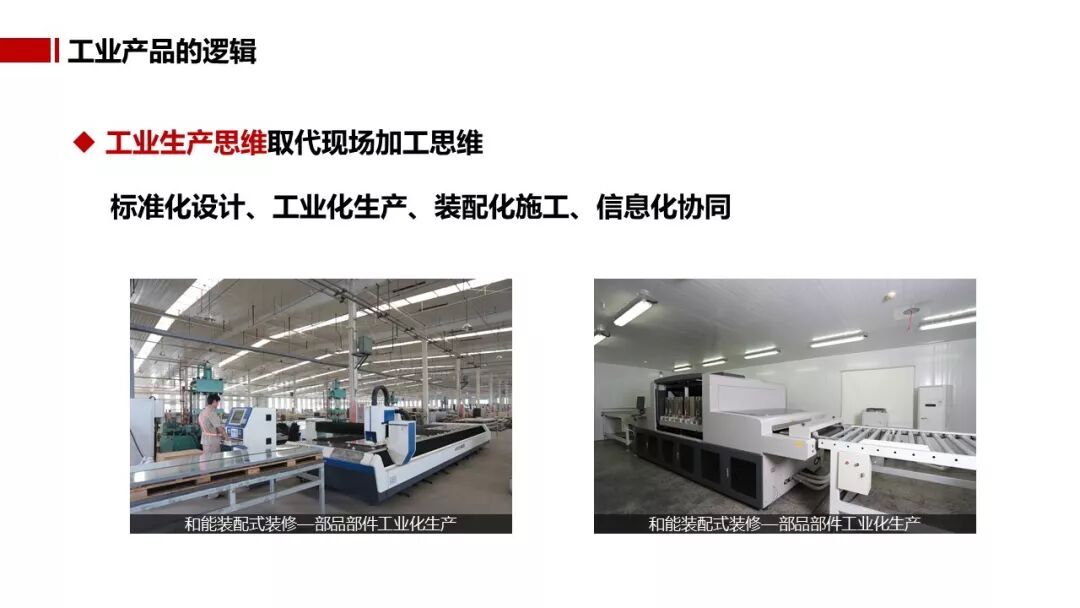 紧接着对装配式内装相关标准进行了详细的解读,指出了需要遵循的重大原则: 1.坚持标准化设计、工业化生产、装配化施工、一体化装修、信息化管理和智能化应用。--将建筑看做一个完整、系统的产品。 2.包含建筑结构系统、外围护系统、内装系统、设备与管线系 统的集成。--装配式建筑不只是结构的事,而是各专业的集成。 3.应按照系统集成的方法统筹设计、生产、运输、施工和运营 维护,实现全过程的一体化。--装配式建筑要从全产业链的角度去统筹考虑,协同工作