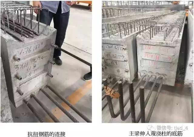 为便于预制构件的加工以及现场施工,在图纸设计的过程中,梁平面定位尽量居柱中,通过加大纵筋直径或局部第二排钢筋不伸入支座来减少钢筋数量。对框架柱也可采用并筋形式,其目的均是为了便于钢筋的排布以及连接。