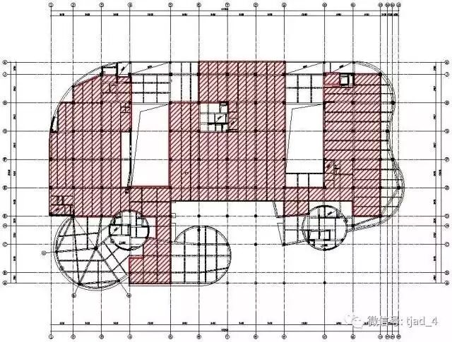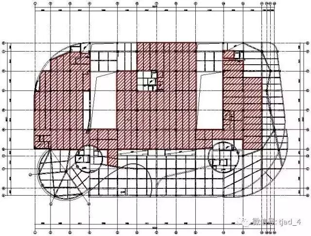 该项目基础采用冲孔灌注桩+承台+防水底板的形式,上部结构采用框架-剪力墙结构体系。根据结构规则性判断,该项目存在扭转不规则、楼板不连续、尺寸突变、构件间断等超限项,属于超限高层结构,设计中采用性能化设计,关键构件满足“正截面中震不屈服,斜截面中震弹性”的性能水准,并顺利通过了抗震超限评审。