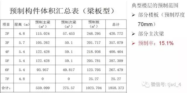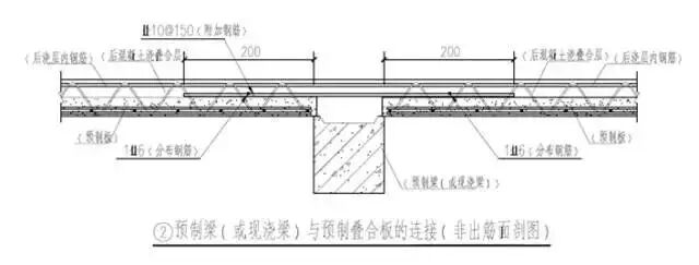 本项目预制楼板采用叠合板形式,以单向板为主,局部尚有双向板。预制梁分别用于次梁和框架梁中,其中次梁与主梁的连接采用牛担板的形式。整个项目共有约2300块预制板和约600根预制梁。